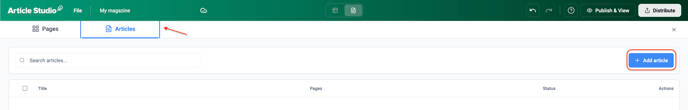 - Once in the Article Studio, proceed to the Article tab and click Add article button: