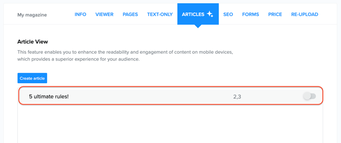 🎉 In the Joomag viewer, you'll see the Article View button on any page where an article has been created.