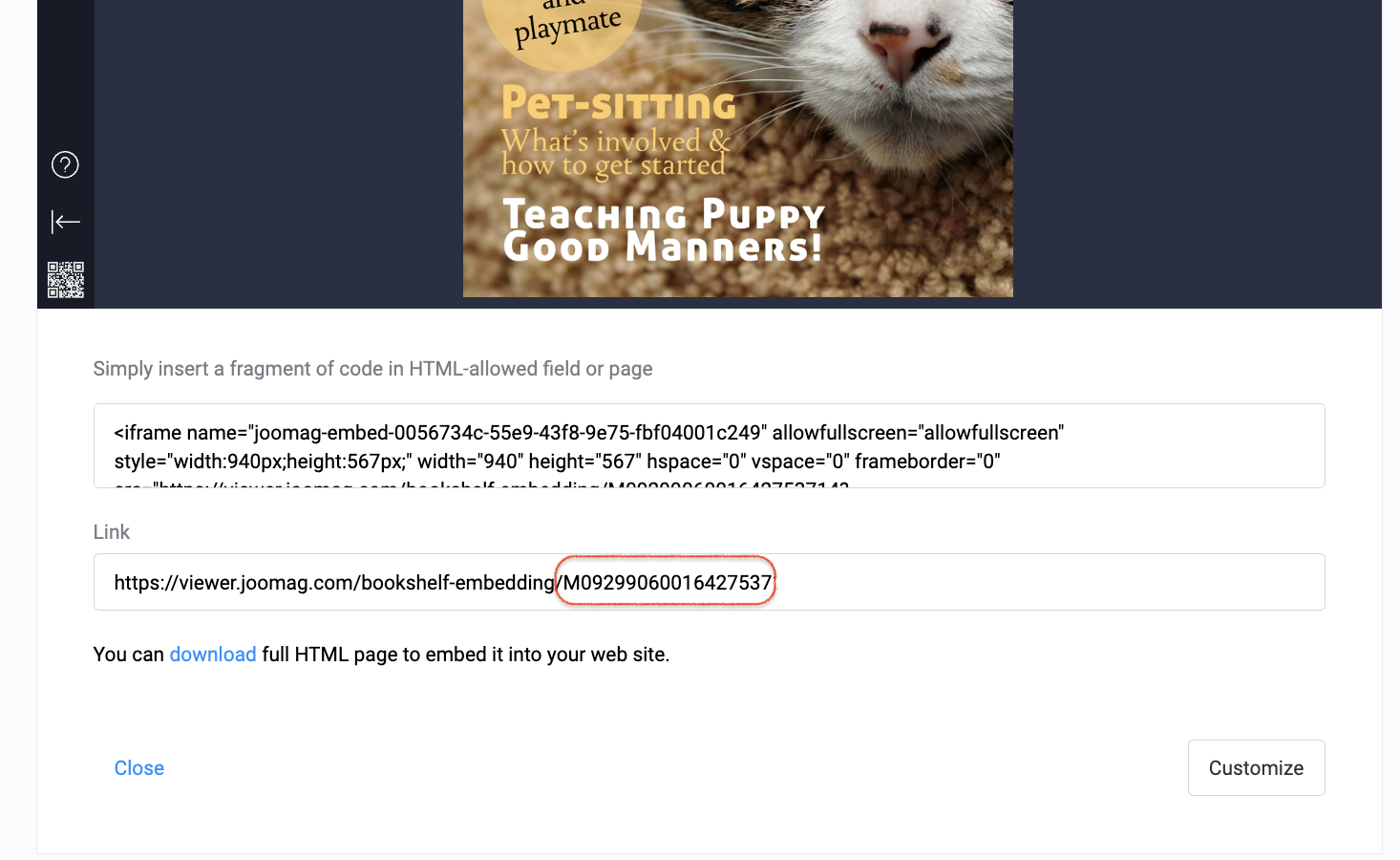 The URL contains the Joomag domain, publication title and unique identifier numbers that identify each publication (UID). In order to copy the UID and use it for the integration, simply double-click that part of the URL and use Ctrl+C/ Cmd+C.